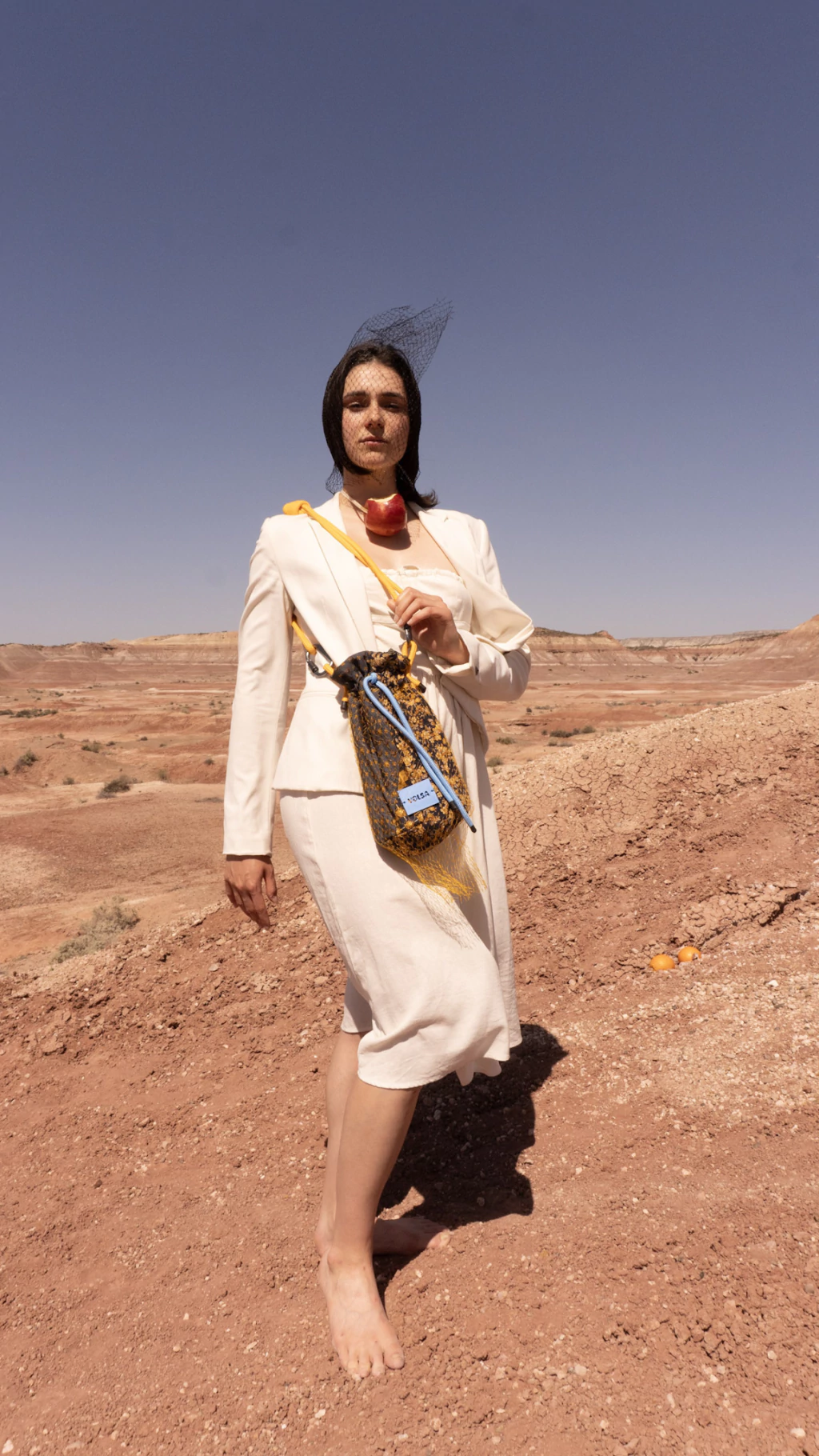 Materiales reutilizados: Realizado con mix de corbatas, donadas por el papá de Mateo; red amarilla (exterior) recuperada gracias a Somos Hacelo Circular ; arpillera plástica (interior) recuperada por Le Jardinere, huerta agroecológica; y textil matelassé remanente de corte textil (forrería).